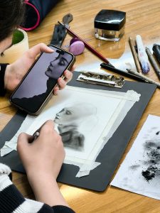در تکنیک سیاه قلم تصاویر به کمک مداد های کنته و پودر زغال خلق می شوند. تمامی ظرایف و پیچیدگی های مدل تنها با طیفی از رنگ های خاکستری به تصویر کشیده می شوند. در این دوره آموزش ها به سبک هایپر رئالیسم انجام می شود که اوج تبلور و بلوغ علم زیبایی شناسی نقاشی است.